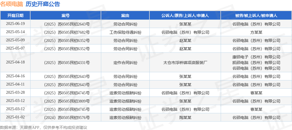 本站消息,根据天眼查APP显示,近日公布了一则名硕电脑(苏州)有限公司作为原告/上诉人的开庭公告富腾优配 富腾优配 ,详细内容如下: